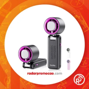 Basike Ventilador de Mão Portátil Recarregavel com Display Digital, Função Resfriamento, 100 Níveis, 12W Bateria 6000mAh, Anjo Ajustável 180°, para Casa, Viagens e Escritório Durante