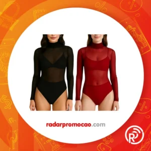 Kit 2 Body Tule Transparente Feminino– Manga Longa Gola Média Look Noite Balada