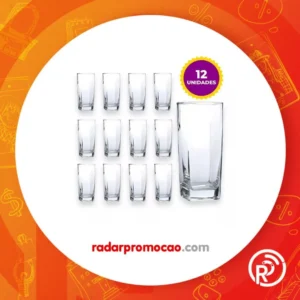 Jogo De 12 Copos Vidro Bali Quadrado Luxo Transparente 320ml