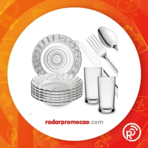 Aparelho De Jantar 30 Peças – Pratos + Copos + Talheres Inox