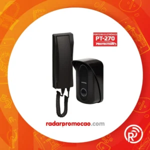 O Porteiro Eletrônico PT-270 é de fácil instalação, utilizando um sistema de plugs, e conta com um botão para destravamento da fechadura e um LED