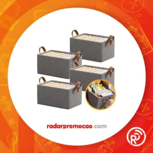 Kit 4 Cesto Caixa Organizadora Dobrável Guarda Roupa Grande